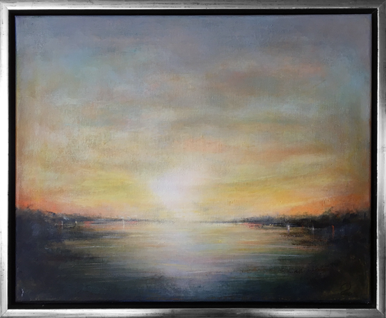 Kvälls ljus, akryl på canvas, 54 x 144 cm med ram